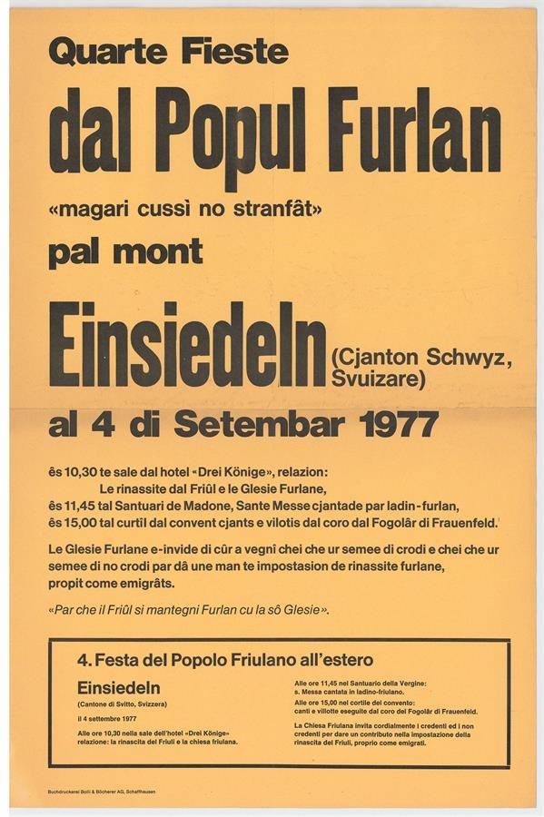 4. Festa del popolo friulano all'estero, Einsiedeln (Cantone di Svitto, Svizzera)
