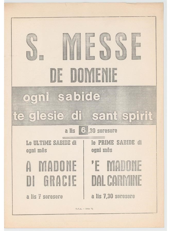 S. Messe de domenie ogni sabide te glesie di Sant Spirit