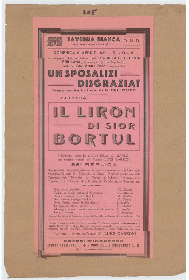 Un sposalizi disgraziat di G. Del Puppo; Il liron di sior Bortul di G. Marioni