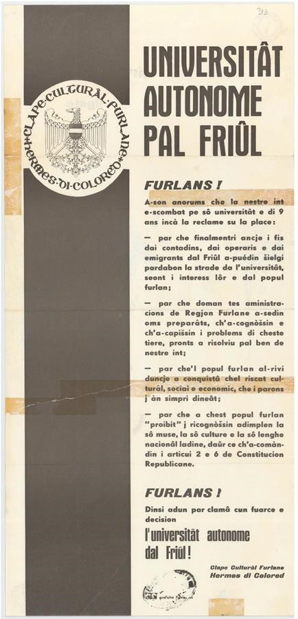 Manifesto a cura dell'associazione Clape Culturâl Furlane Hermes di Colorêd