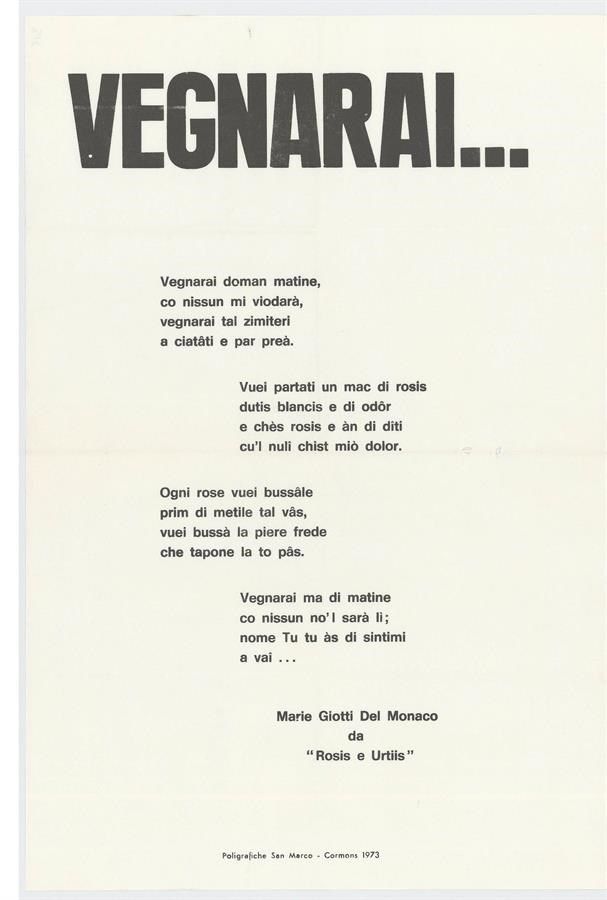 Vegnarai..., poesia di Maria Giotti Del Monaco da "Rosis e Urtiis"