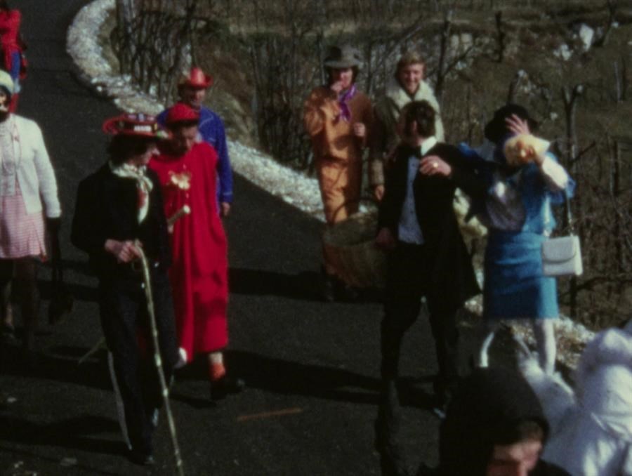 La mascherata di Rodda è numerosa e composta da vari personaggi. Il percorso che la compagnia dei mascherati compie attraversa tutte le numerose frazioni del paese di Rodda. Lo schema d'azione è il seguente: il gruppo si muove di borgata in borgata; incontra i paesani che aspettano la compagnia con vino e uova per la questua; le maschere entrano nelle case per ballare con le persone all'interno oppure rimangono all'esterno coinvolgendo i presenti in scherzi e giochi. La compagnia, di cui fanno parte i giovani maschi del paese, è composta da diverse figure. La coppia di San Michele e il diavolo: il diavolo con una maschera di legno dipinta e con la forca in mano crea disordine e scompiglio mentre l’angelo, che lo trattine e strattona con una corda, cerca di riportare l’ordine appena turbato. Altre coppie presenti: quella dei #giovani# e quelli dei #vecchi# che solitamente danzano assieme; una maschera antropoforma riconducibile ad un cane da pastore; una figura di alto prelato vestito completamente in rosso che si muove impartendo benedizioni e saluti. Ci sono anche le maschere, con fattezze femminili, riconosciute con l'appellativo di #le signorine# o #le belle# in constrasto con #le brutte#. Completano il gruppo i #pustje#, la maschera che rappresenta il Carnevale. I #pustje# indossano una tuta rivestita da strisce colorate di stoffa e un cappello, a cono, anch'esso ricoperto da stoffe. In mano tengono le #kliešče#, tenaglie in legno; e sui fianchi, legati con corde, i campanacci che suonano muovendo il busto. Con le lunghe tenaglie estensibili i #pustje# afferrano le gambe e infastidiscono gli spettatori, mentre scortano o anticipano il corteo carnevalesco. Fanno parte della compagnia anche la figura del #vivandiere# il cui compito è quello di raccogliere i doni offerti dalle famiglie lungo il percorso; e il suonatore di fisarmonica.