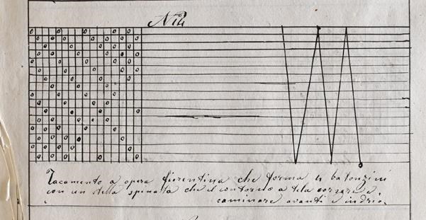 Tacamento a opera fiorentina che forma 4 botonzini con una stella spinata che il contorno a tela corsar e caminar avanti e indrio.